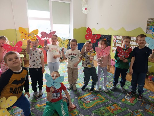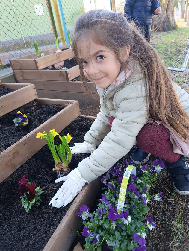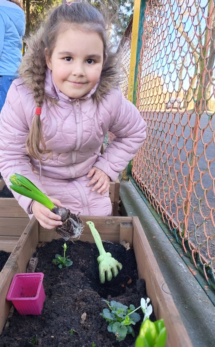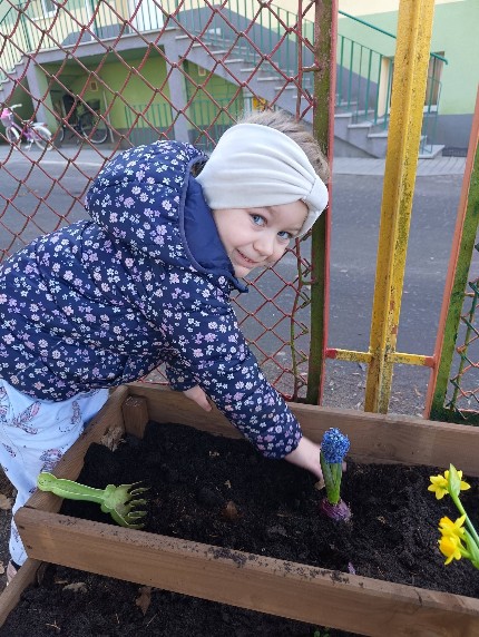 "Niezabudki "z naszego przedszkola zapraszają wiosnę do ogrodu przedszkolnego.