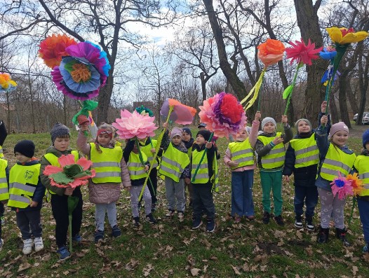 Dziś przedszkolaki pożegnały zimę i przywitały wiosnę.Wszystkie dzieci z pięknymi kwiatami utworzyły kolorowy korowód prowadzący Marzannę.Dzisiejszy dzień pełen był tańców, wspólnego śpiewania i tworzenia wiosennych prac.