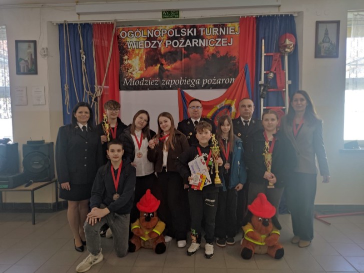Jesteśmy dumni ze wszystkich uczniów biorących udział w turnieju. Nadia Durman, Alicja Skorupska, Michał Sienkiewicz z klasy 4, Alicja Sadowska, Nikola Wiącek z klasy 5 oraz Wojciech Wieczorek i Kacper Król kl. 7 zaprezentowali bardzo wysoki poziom wiedzy i umiejętności w zakresie pożarnictwa i pierwszej pomocy i w łącznej punktacji zajęli drużynowo I miejsce!!!