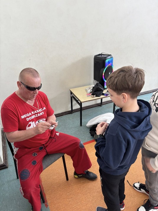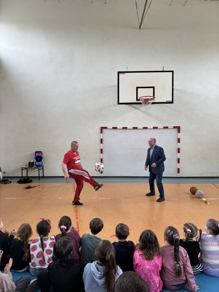 26 marca odwiedzuł naszą szkołę niezwykły gość - Pan Janusz Chomontek, 19-krotny rekordzista księgi Guinnessa Jego najsłynniejsze wyczyny obejmują pobicie rekordu Diego Maradony (35 tys. odbić piłki) oraz liczne żonglerskie maratony, w tym przejście 100 km z piłką na nodze. Uczniowie wzięli udział w efektownym pokazie żonglowania piłkami. Występ mistrza trwał około godziny. Na koniec każdy mógł poprosić o autograf i zrobić sobie pamiątkowe zdjęcie.