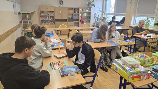 17 grudnia w naszej szkole odbył się "Dzień z grami planszowymi". Uczniowie wszystkich klas grają w różnego rodzaju gry planszowe i nie tylko. Gry planszowe oferują wiele korzyści. Przede wszystkim gry planszowe sprzyjają interakcji między graczami, co pomaga w rozwijaniu umiejętności komunikacyjnych i współpracy. Wiele gier wymaga strategii, planowania i krytycznego myślenia, co angażuje mózg i może poprawić zdolności analityczne, zwiększają koncentrację, uczą jak radzić sobie z wygraną i przegraną, co jest ważnym elementem życia społecznego.