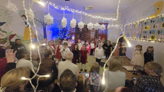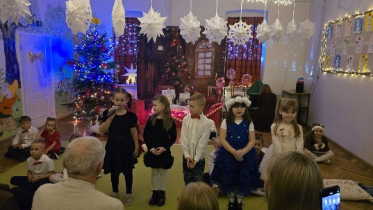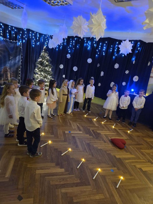 Czas przedświąteczny to był czas wspólnych spotkań wigilijnych i kolędowań. Wszystkie grupy w przedszkolu zaprezentowały się przed rodzicami, a w piątek, w szkole, zorganizowano wspólną wigilię dla przedszkola i szkoły podstawowej.