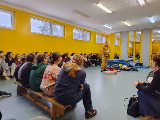 16 grudnia br. uczniowie naszej szkoły uczestniczyli w spotkaniu z p. Mariuszem Ozimkiem z Ochotniczej Straży Pożarnej w Lubiążu, który wyjaśniał zasady udzielania pierwszej pomocy w sytuacjach nagłych, z zachowaniem bezpieczeństwa dla uczestników zdarzenia i oczywiście ratownika. Uczniowie samodzielnie ćwiczyli RKO na fantomie, poznali zasady podłączania defibrylatora. Nasz Gość wyjaśniał, jak zadbać o bezpieczeństwo pożarowe, ochronę zdrowia i życia domowników zwłaszcza w okresie zimowym (grzewczym). Bardzo dziękujemy Panu Mariuszowi Ozimkowi za cenne informacje i poświęcony czas!